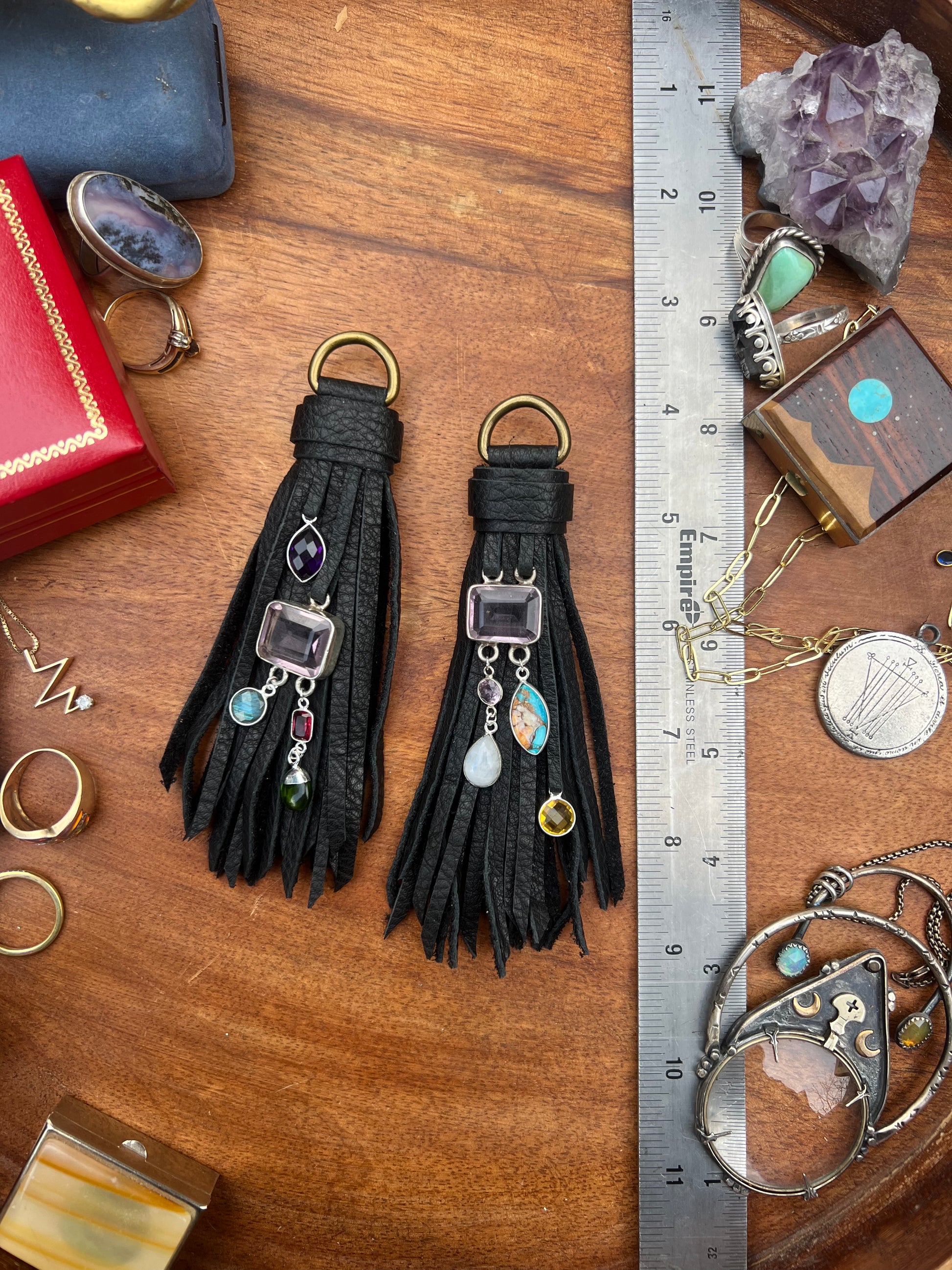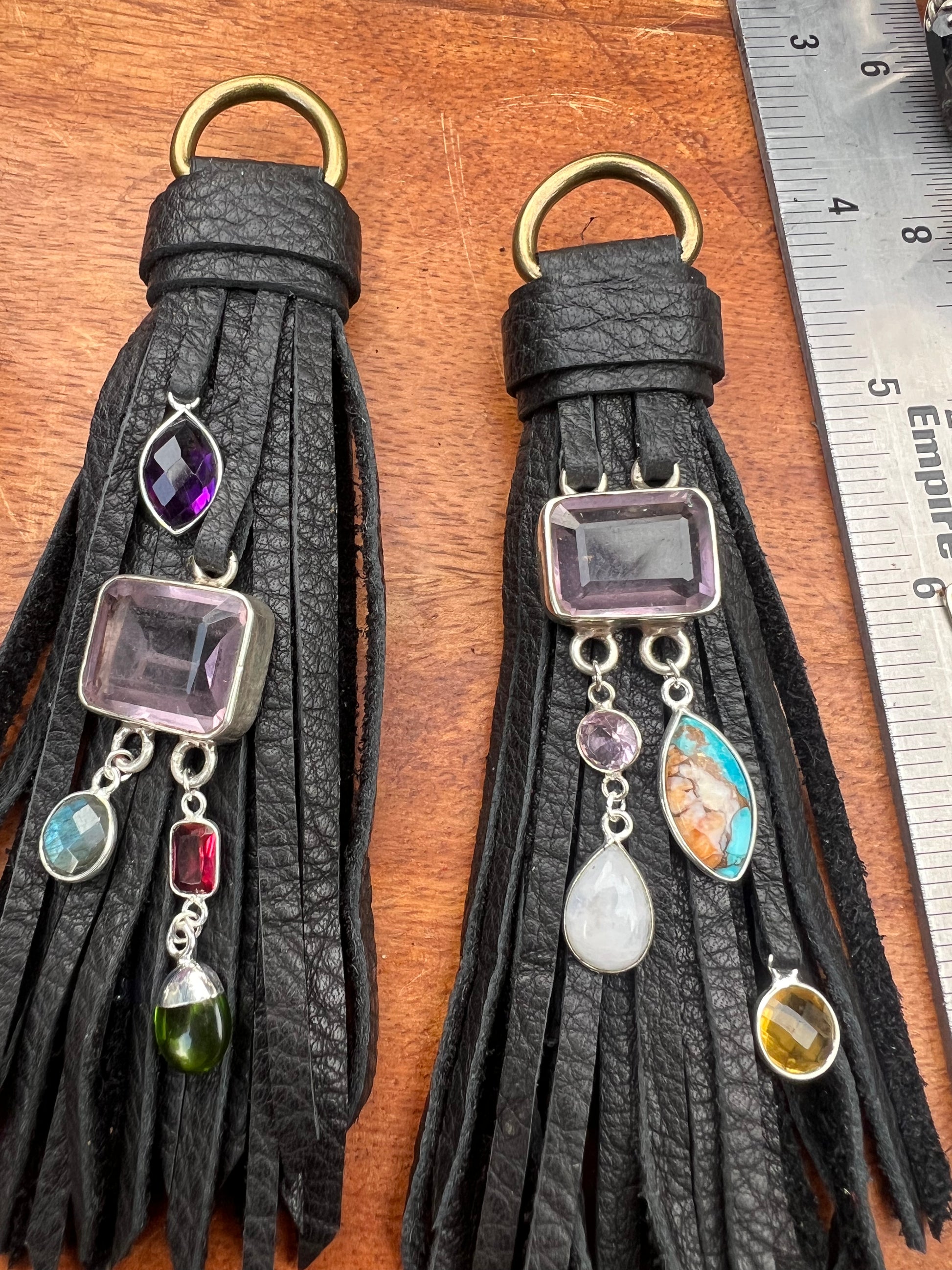 Featuring Morganite pendants, amethyst, labradorite, pink tourmaline, peridot, morganite, moonstone, spiny oyster, and citrine.
