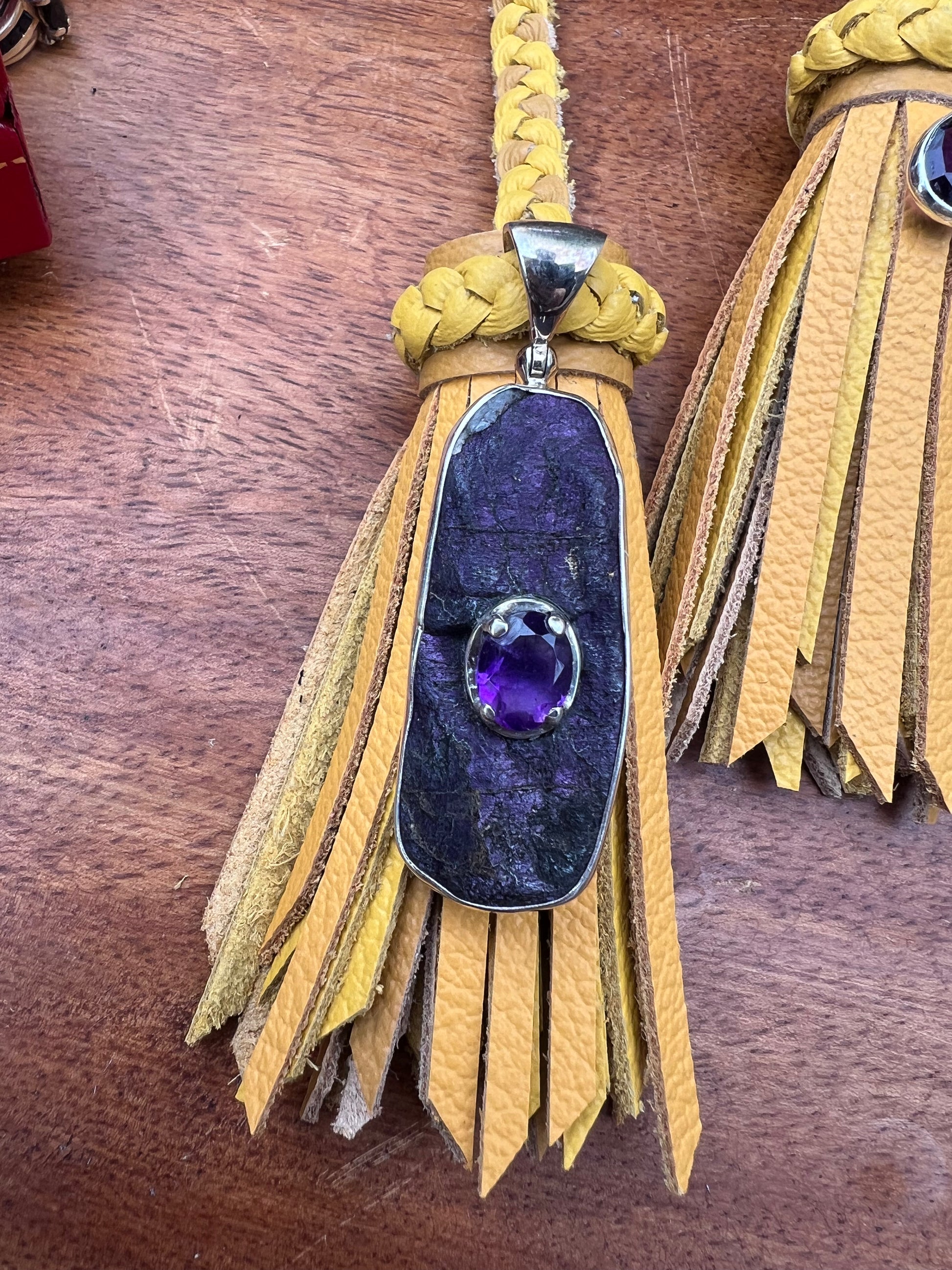 Featuring Lepidolite with inset Amethyst, and amethyst.