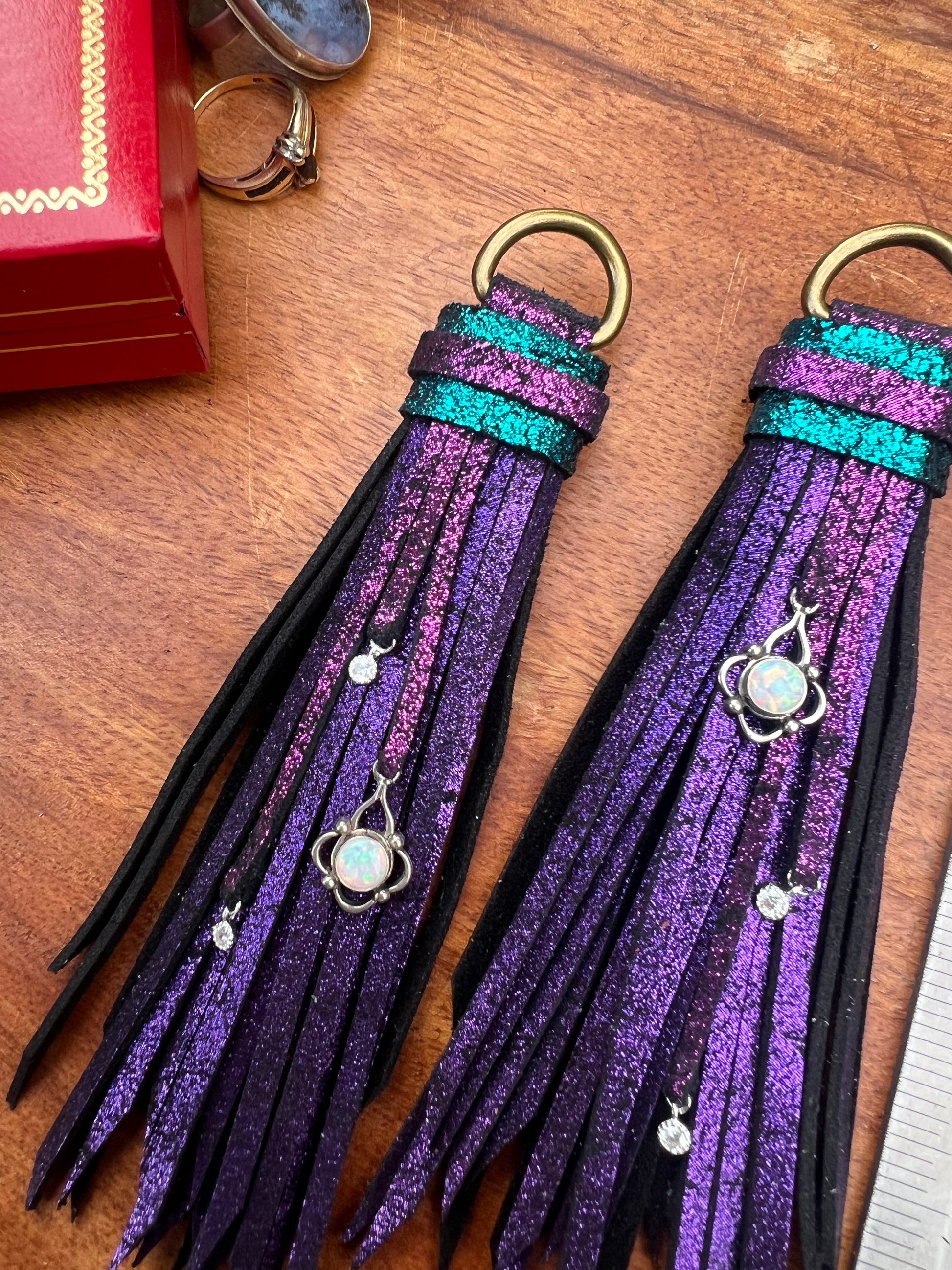 5" Metallic Purple leather with metallic pink and blue accents d-ring set.