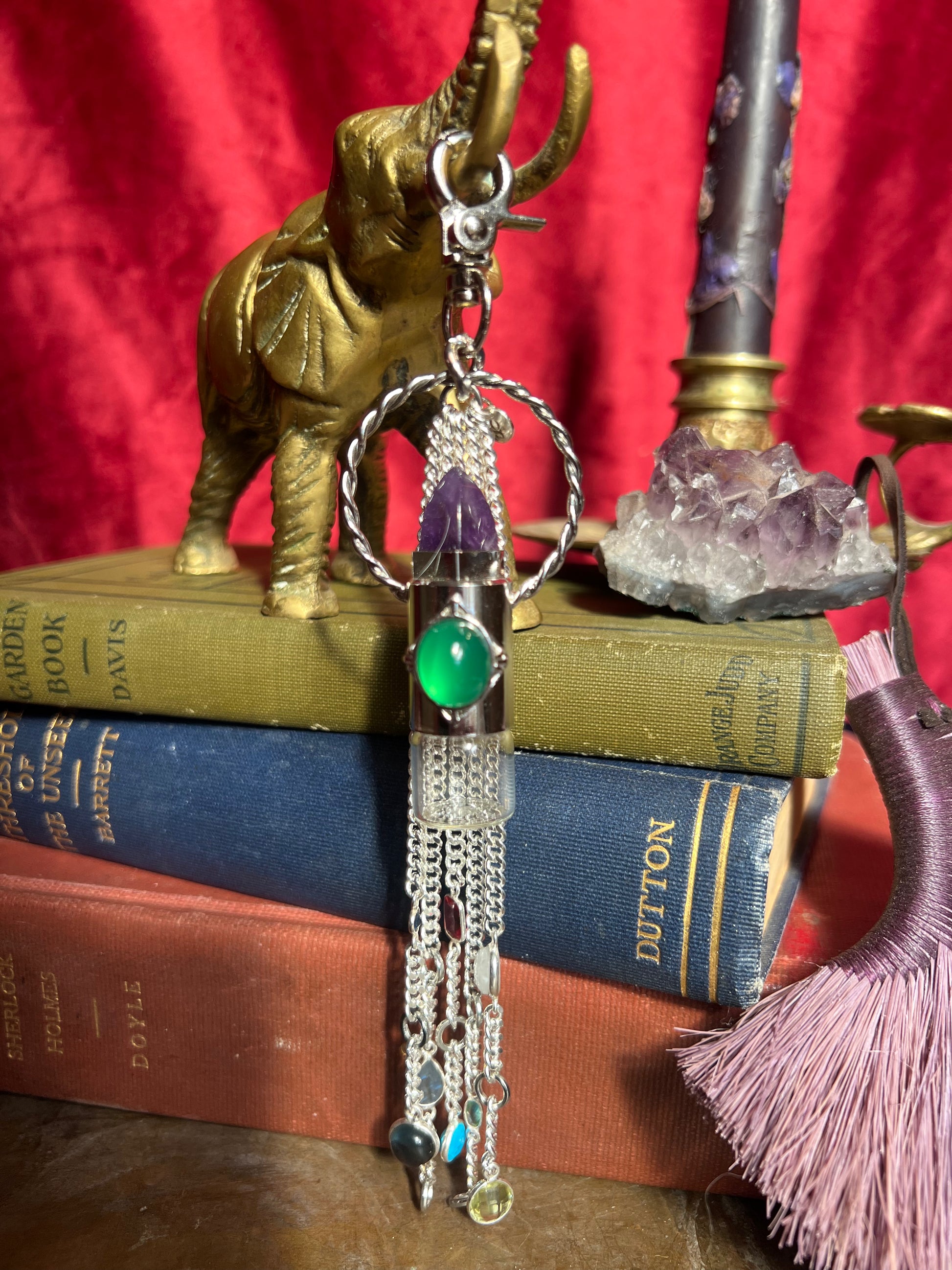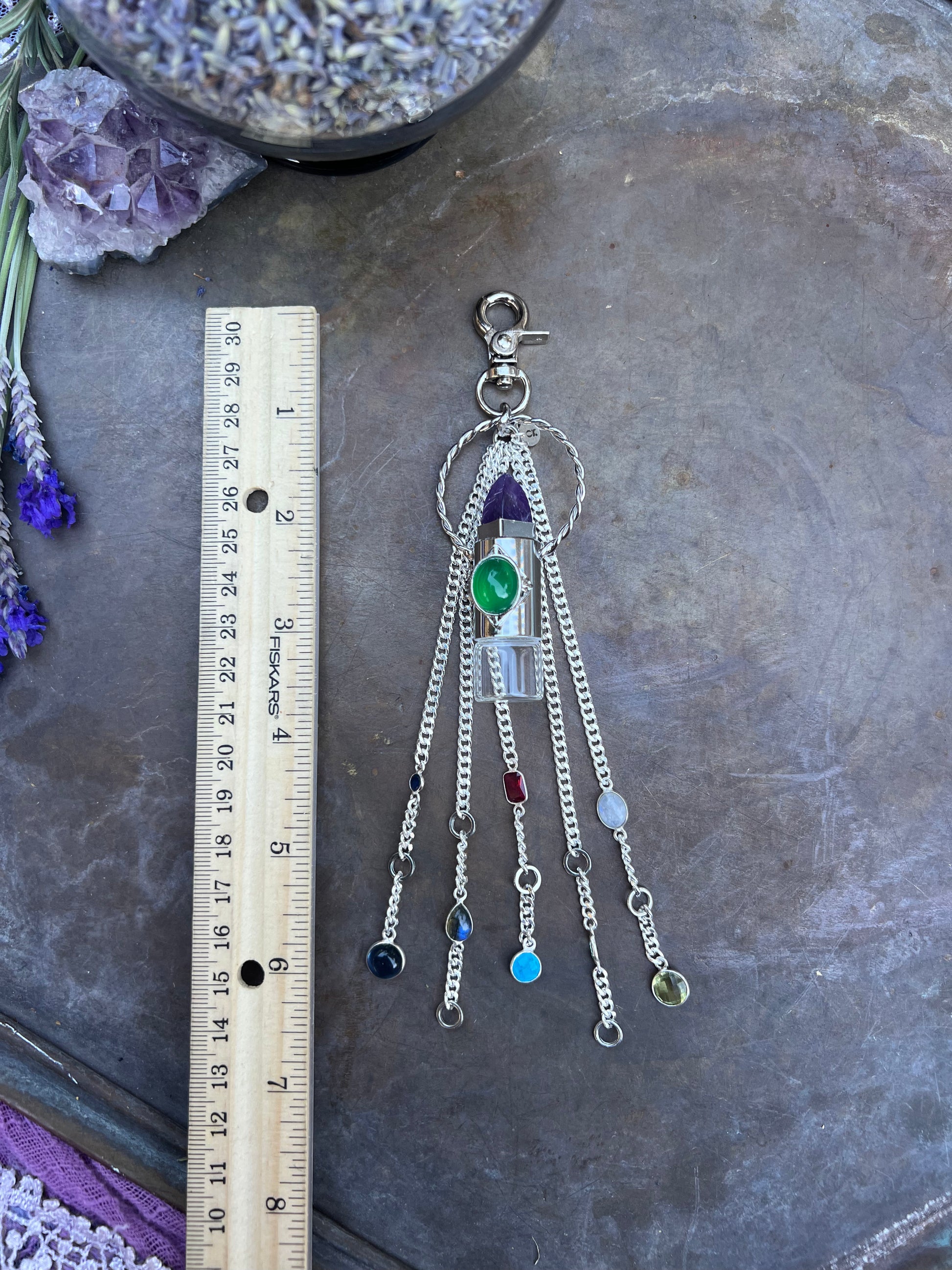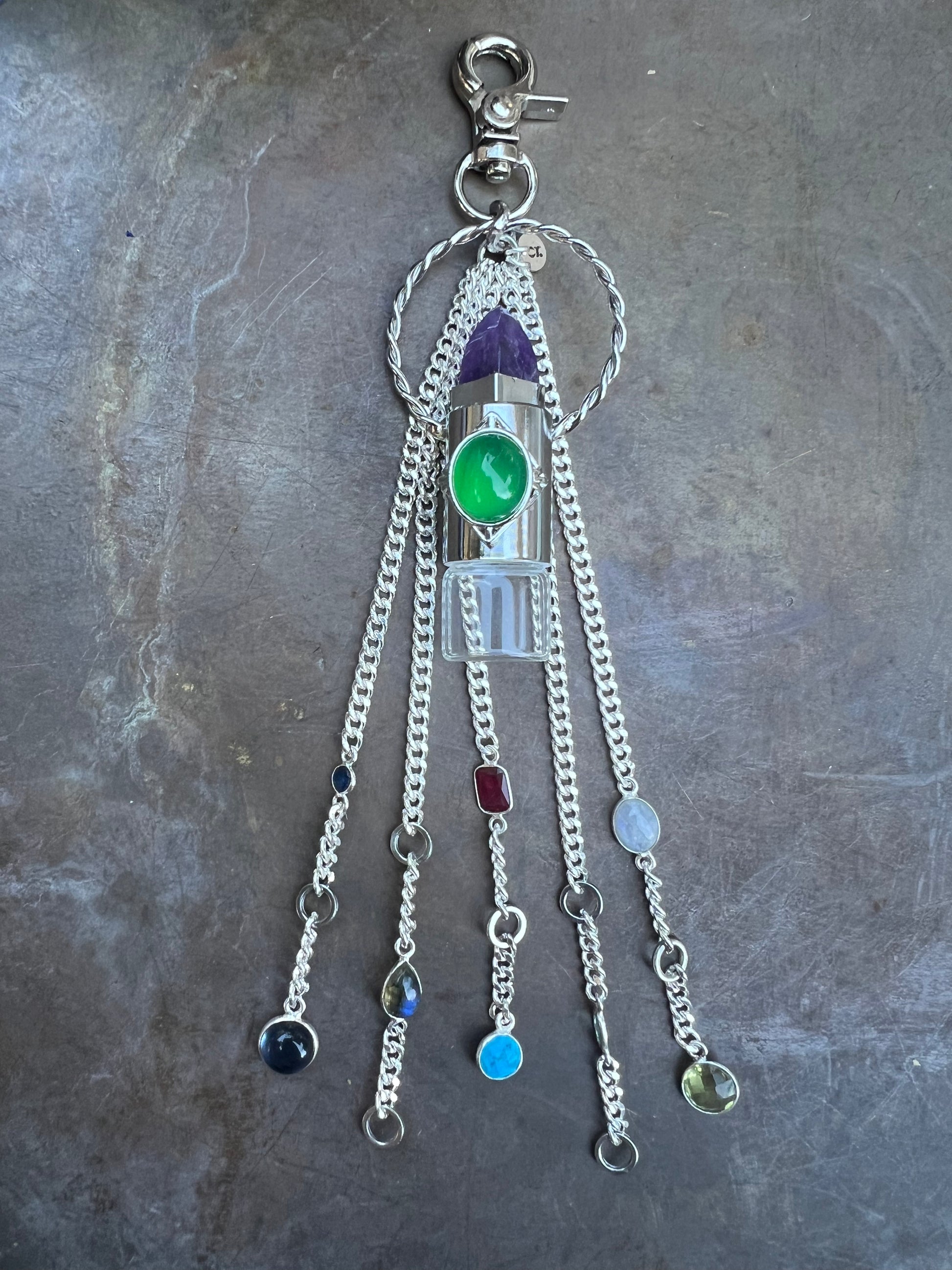 Sapphire, iolite, labradorite, pink tourmaline, turquoise, apatite, moonstone, and yellow quartz, with functioning essential oils roller with amethyst and green chalcedony.