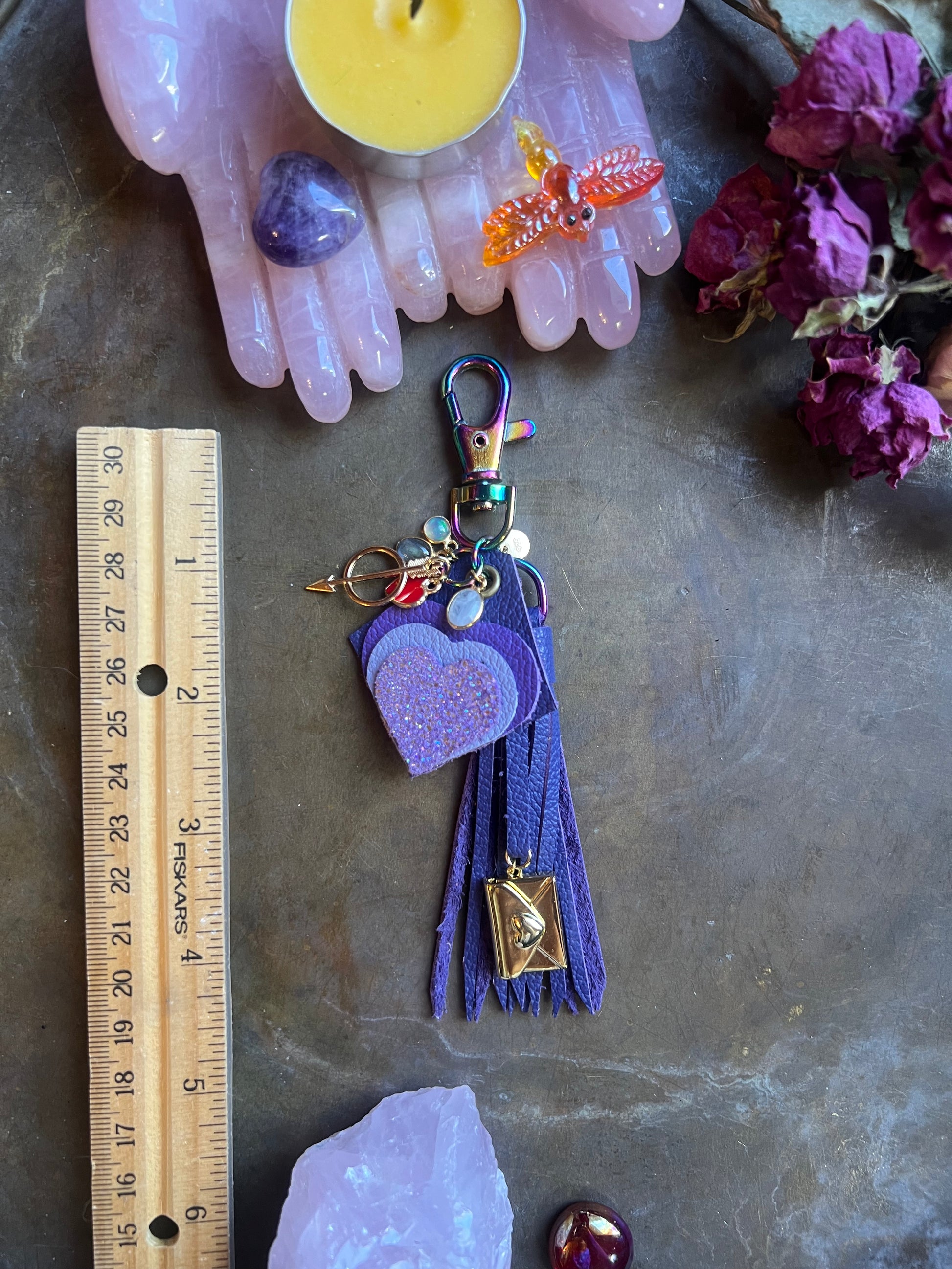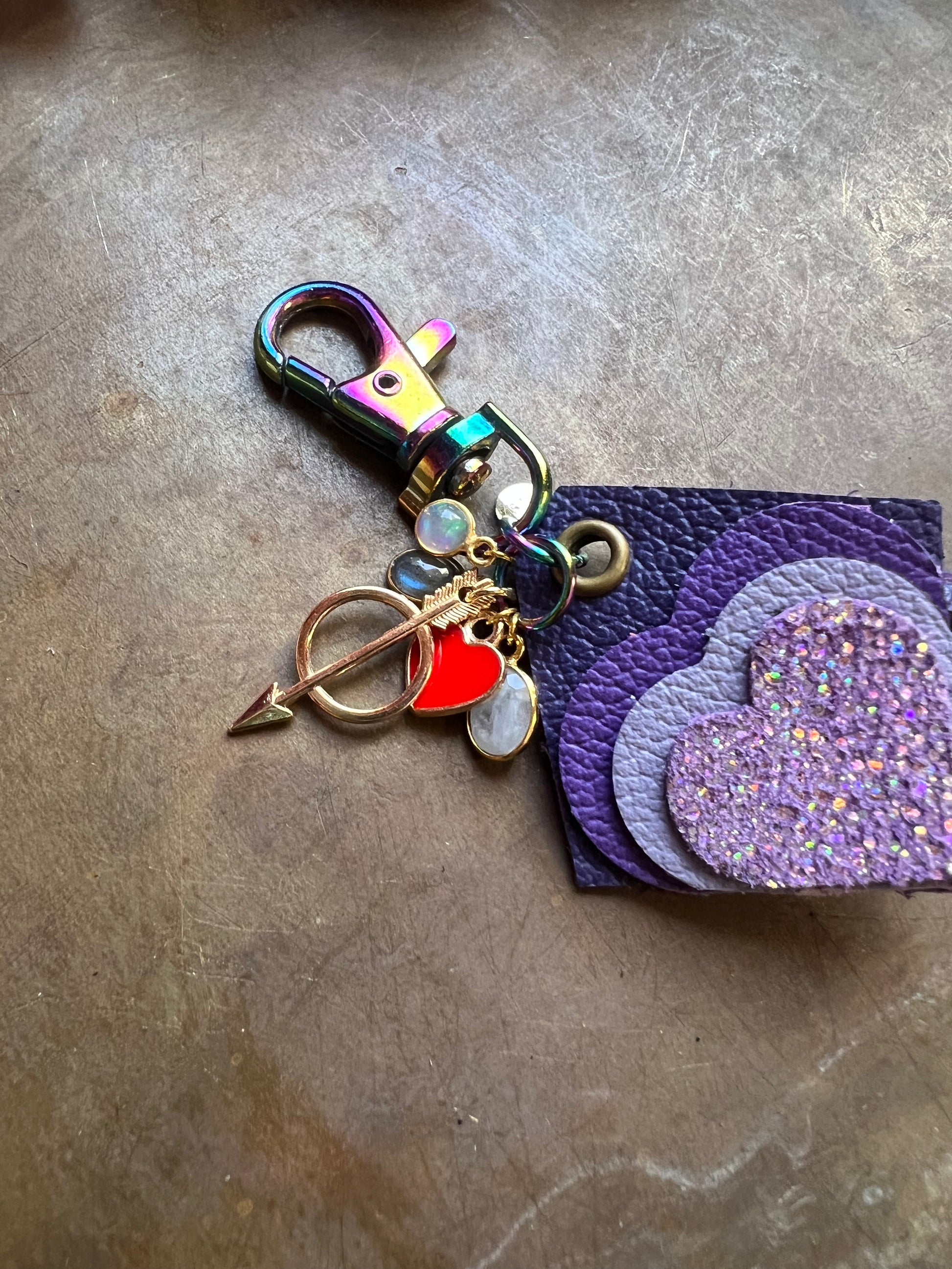 5" purple leathers on iridescent hardware, includes keyring (not pictured.)