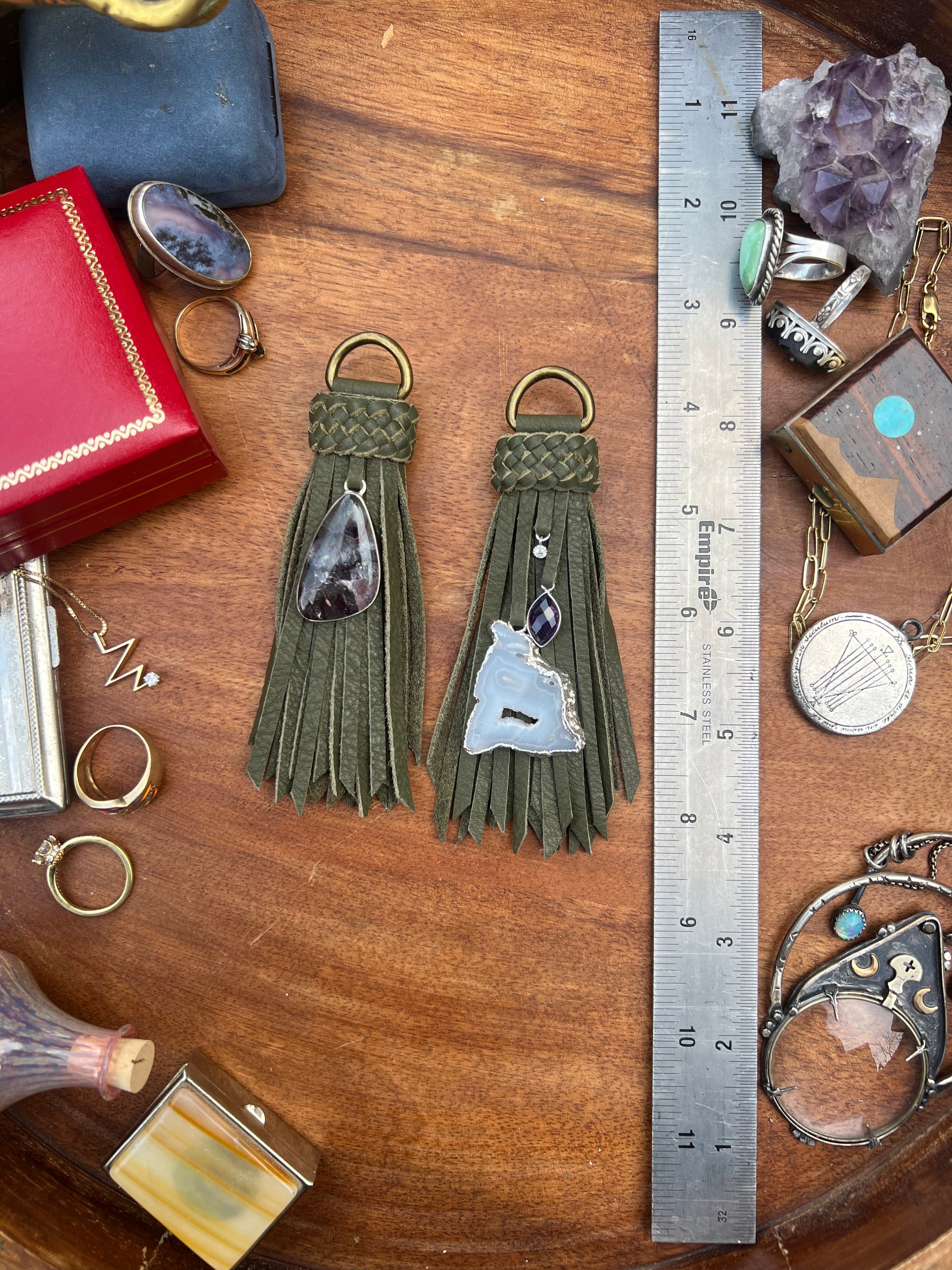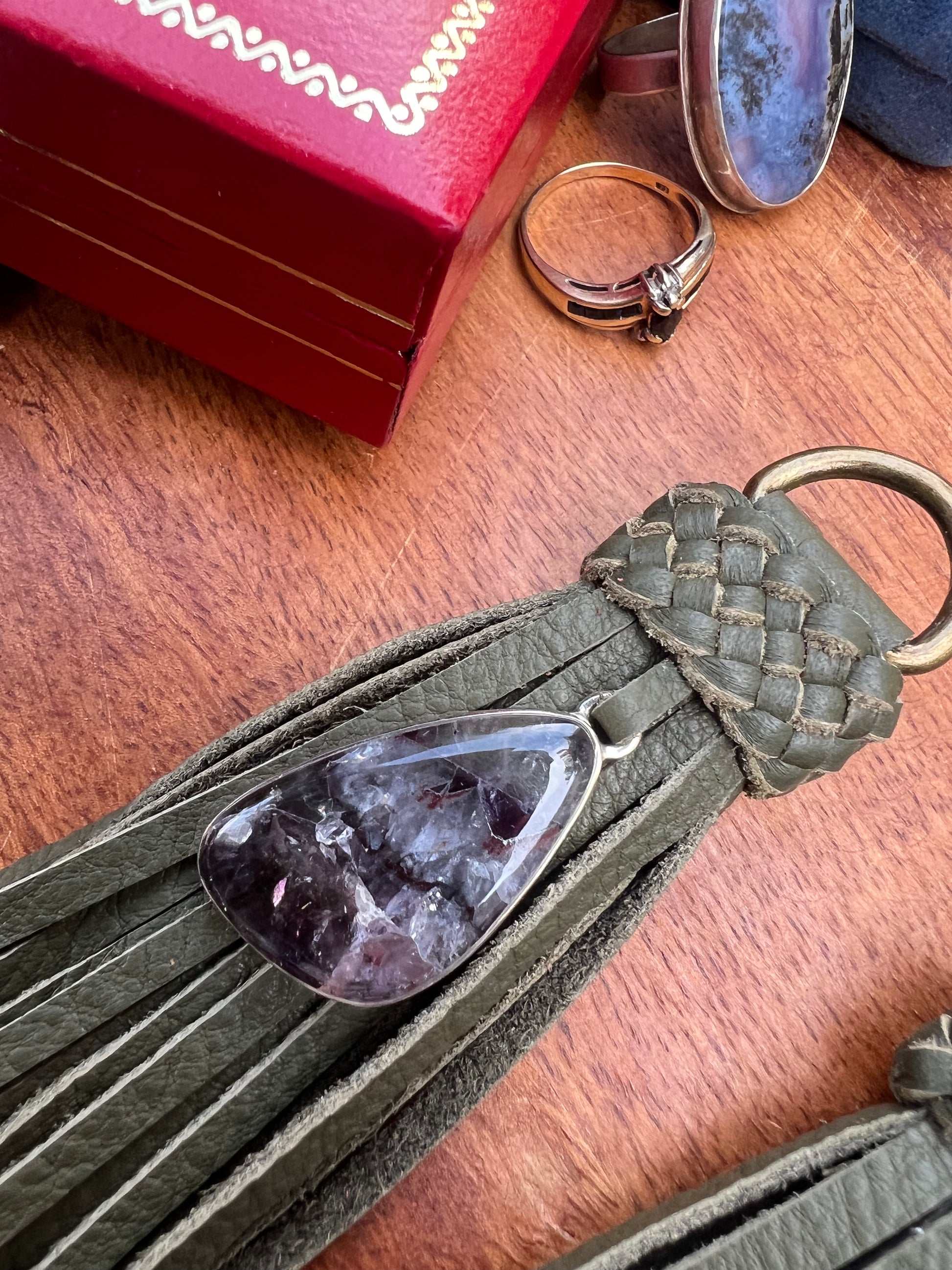 Featuring Auralite-23, cubic zirconia, amethyst, and white agate geode.