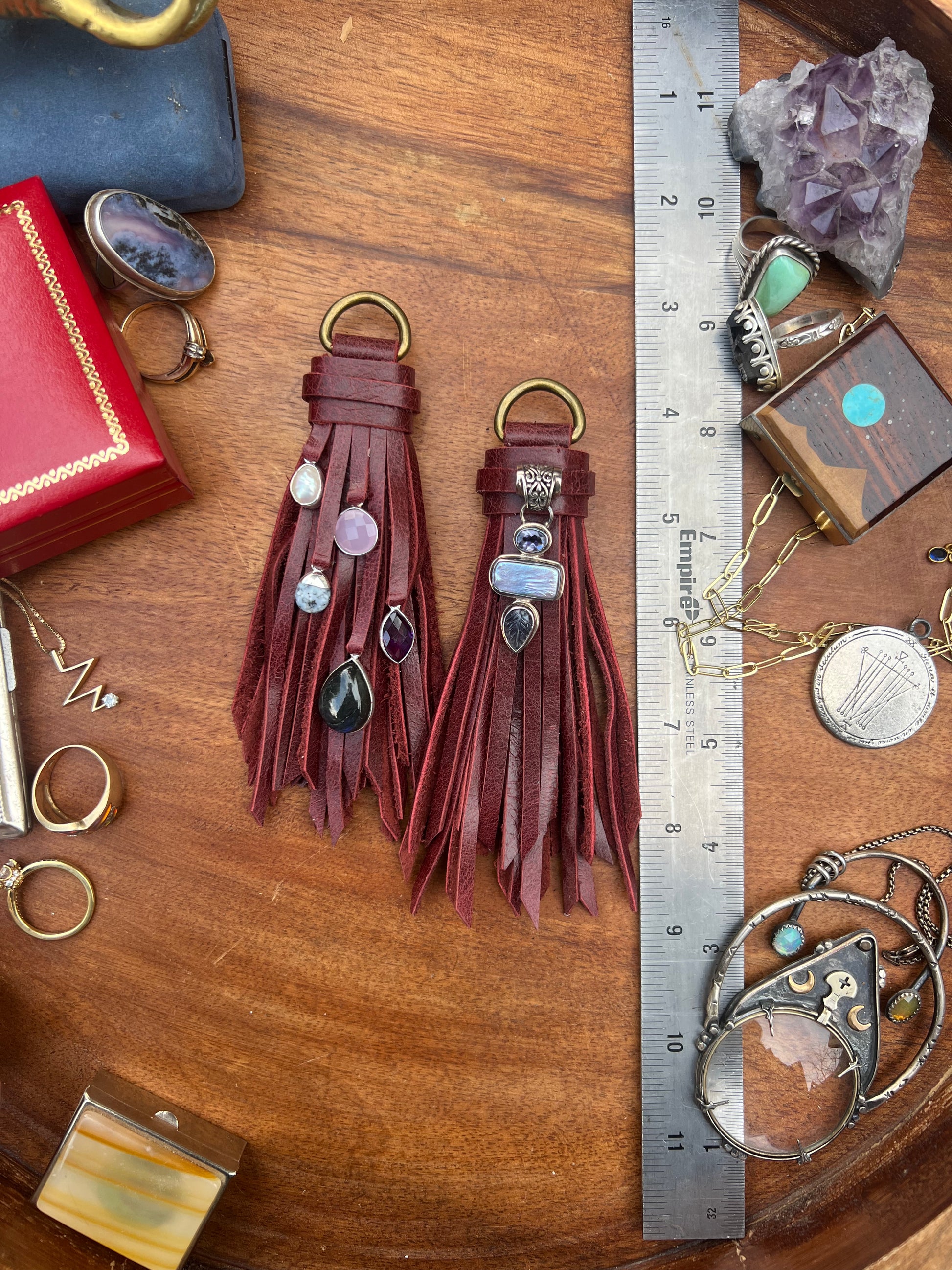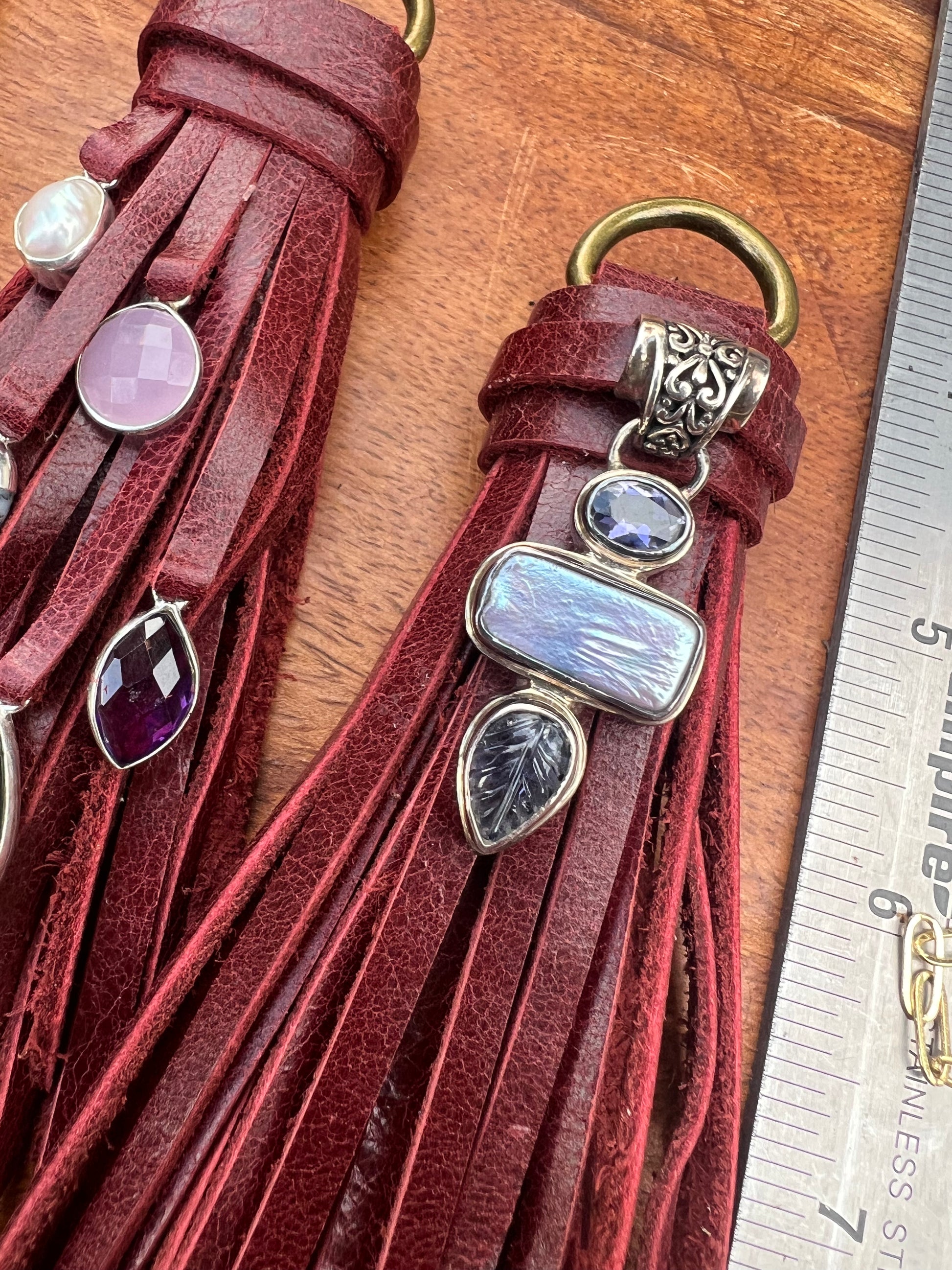 4" Merlot leather d-ring set.