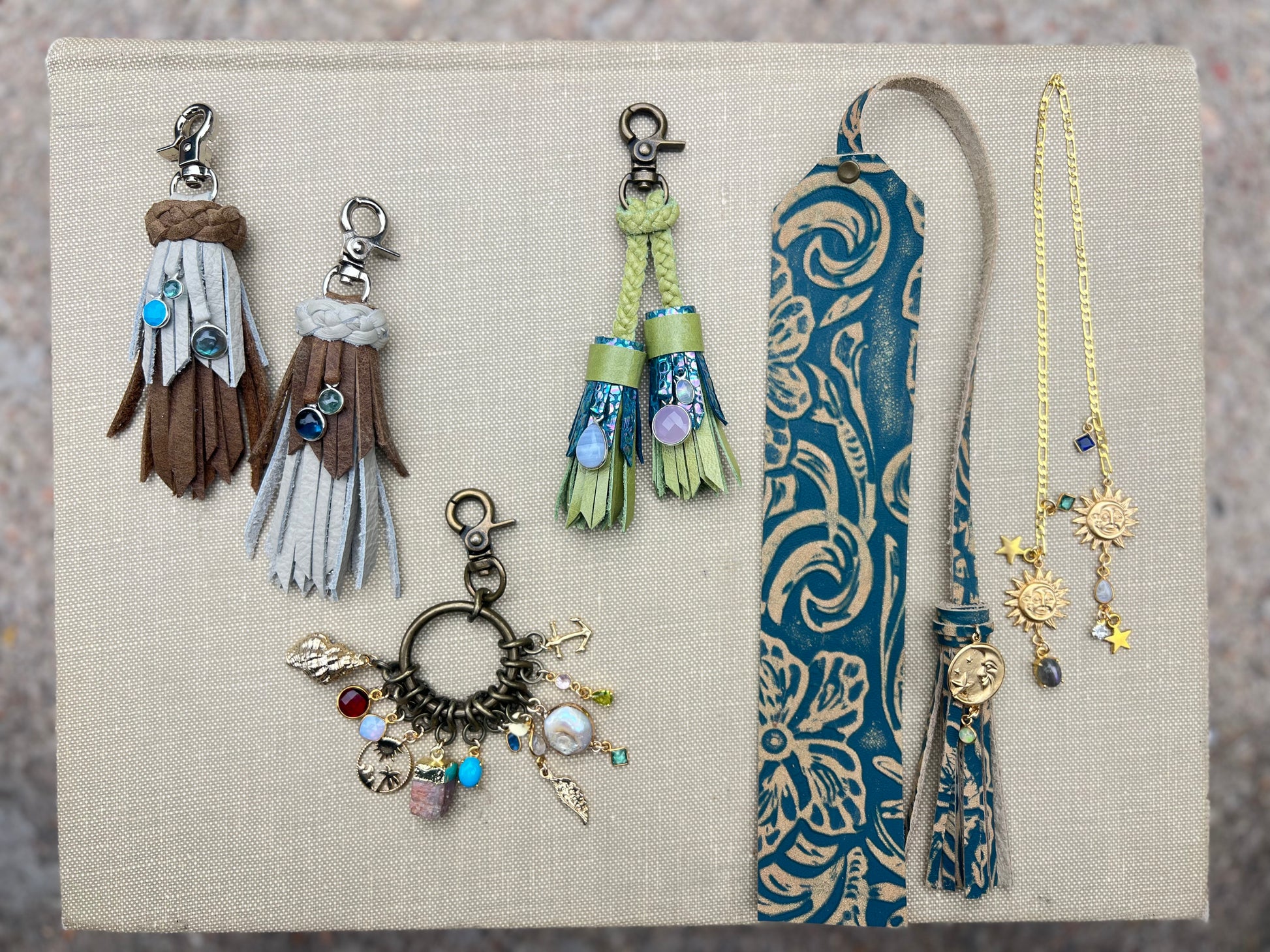 - Set of (2) mostly-matching Mini Tassel Zipper Pulls