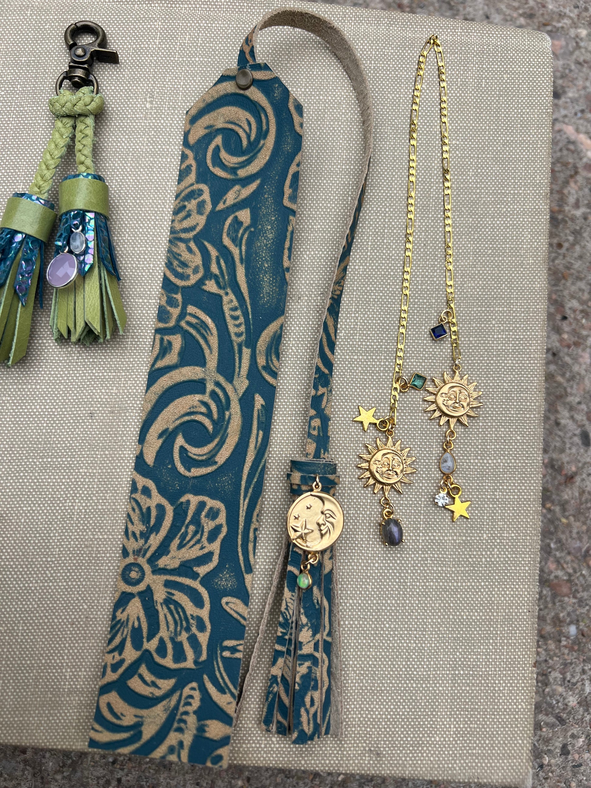 - Set of (2) Bookmarks - one leather, one chain